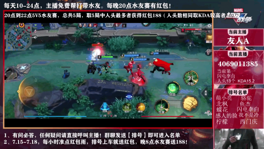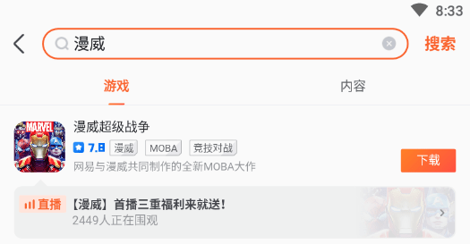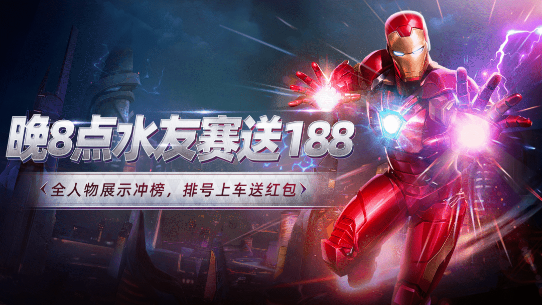 在九游输入漫威,点击搜索,看《漫威超级战争》直播,三重福利,188现金红包等你来拿!